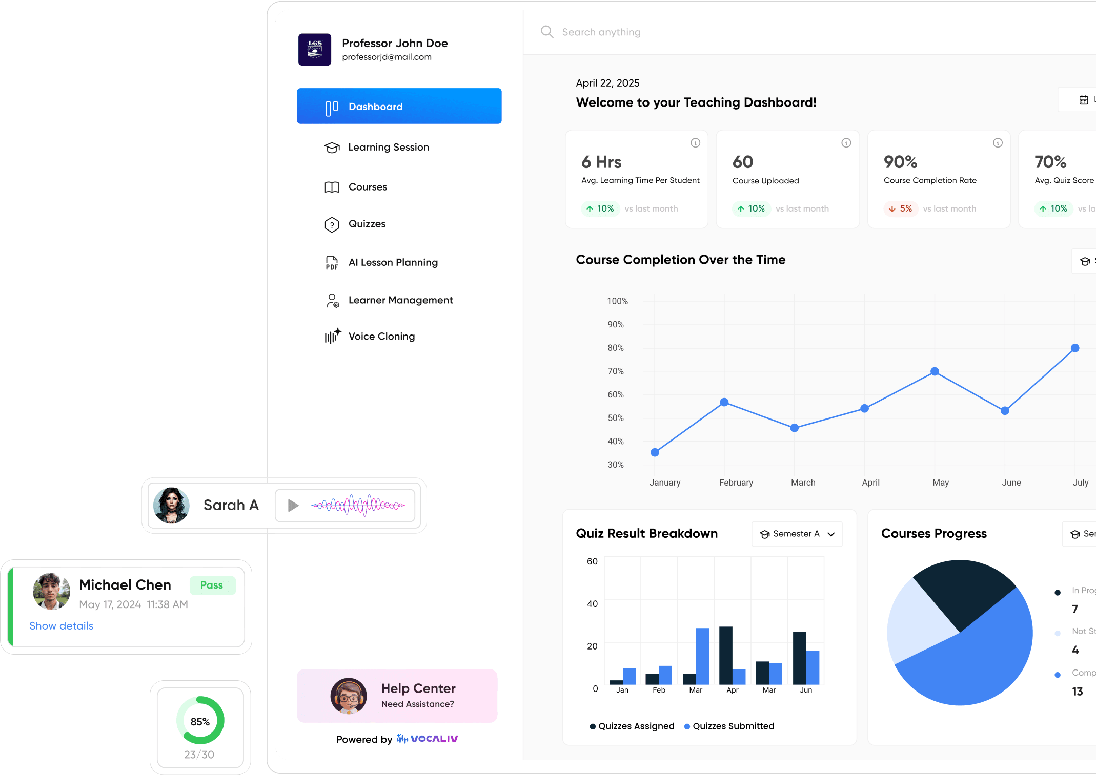 Engage with a lifelike AI avatar that listens, responds, and adapts to your learning style in real time. Experience teaching that feels personal, human, and always available.